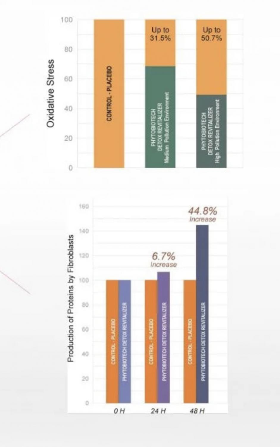 - Strong detoxifying product in reducing oxidative stress on cells by as much as 50.7% at higher levels of pollutants